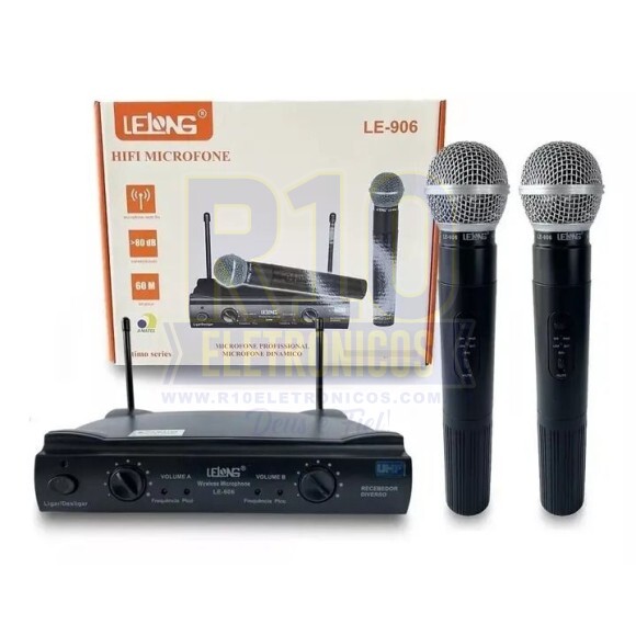 2. MICROFONE LELONG DUPLO UHF SEM FIO LE906