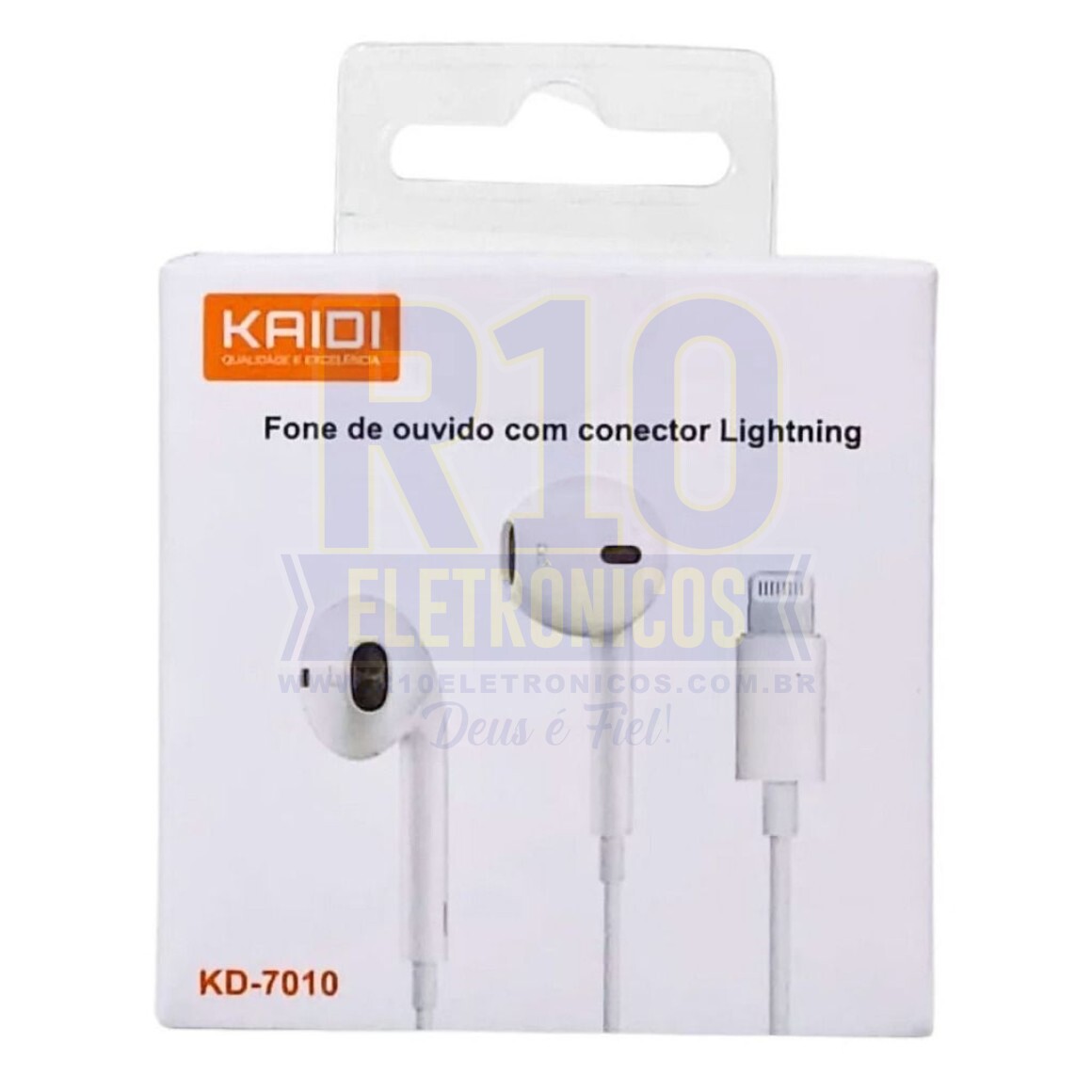 O Fone De Ouvido com Fio Kaidi KD-7010 IOS possui um formato que se encaixa perfeitamente na orelha, com design atual, isso faz com que eles se tornem mais confortáveis para algumas pessoas do que outros tipos de fones intra-auriculares. Seus alto-falantes foi desenvolvido para diminuir a perda e maximizar a saída do som, fazendo assim que seu áudio seja de alta qualidade e definição. Possui controle remoto para que você possa ajustar o volume, controlar a reprodução de músicas e atender e desligar chamadas, tocando no fio. Onde Utilizar O Fone De Ouvido com Fio Kaidi KD-7010 IOS funciona conectado via LIGHTNING garantindo assim maior qualidade e definição de som livre de interferências. Diferenciais O Fone De Ouvido com Fio Kaidi KD-7010 IOS foi desenvolvido com a mais alta tecnologia para garantir um som nítido e de ótima qualidade para você. Seu microfone embutido conta com redução de ruídos e um controle de volume de fácil utilização. Produto com fio, garantindo uma velocidade de transmissão mais rápida, ótimo para quem joga no celular. Nossa Empresa Com 3 anos de tradição, nossa Empresa continua com seus principais valores que são: entregar qualidade, conforto e produtos sofisticados.Nossos produtos possuem matéria prima de primeira de extrema qualidade com objetivo de garantir não apenas a aparência, mas também a resistência e durabilidade da peça.