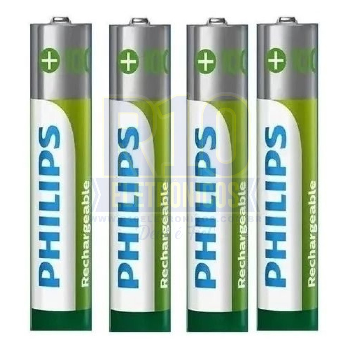 PILHA PHILIPS RECARREGÁVEL AAA C/4 1000MAH R03B4RTU10/97 1000 CARGAS