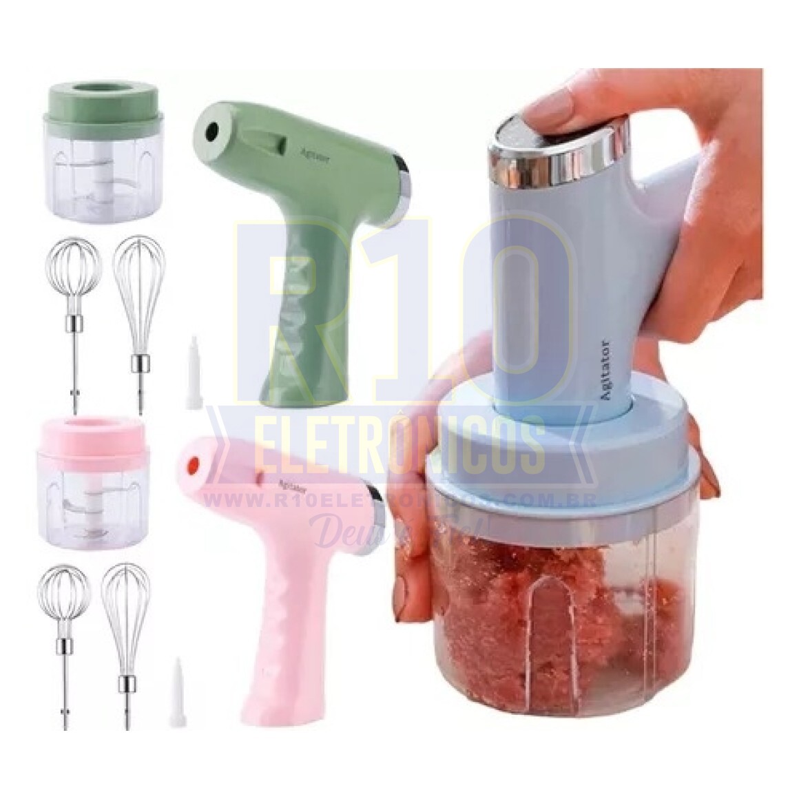 COR ENVIADA CONFORME DISPONIBILIDADE* 1. Assistente de cozinha multiuso: com este misturador de mão elétrico, você obterá as funções de batedor de ovos e chopper de comida, tornando-se uma ótima escolha para sua ferramenta de cozinha.
