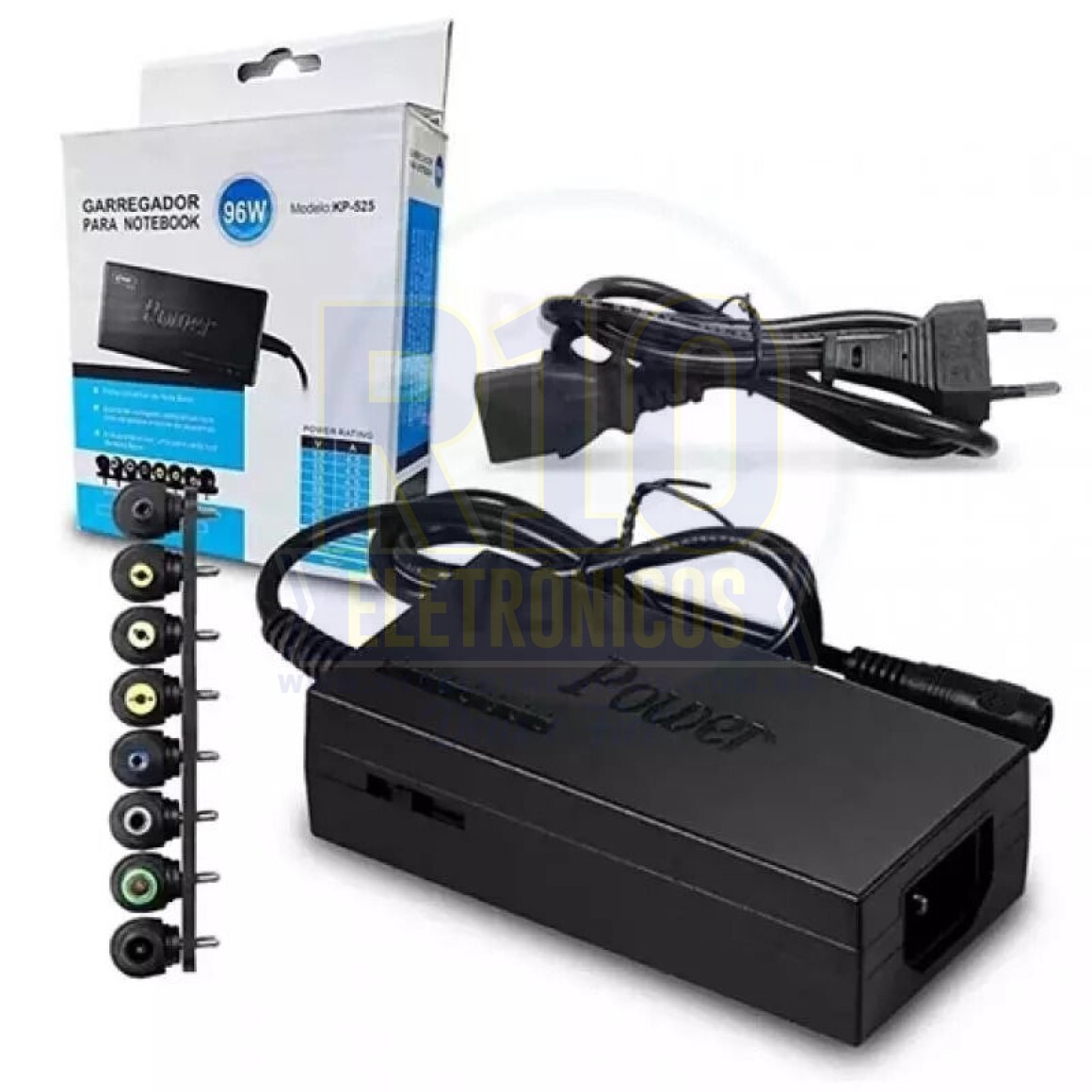 Fonte Carregador Universal Notebook Com 8 Plugs Bivolt 12-24V 4-4.5A Knup KP-525 Descrição A fonte universal Knup, ajuste manual, compacta e fácil de transportar. Proporciona alta eficiência com baixo consumo de energia. Compatível com a maioria dos notebooks e monitores Lcd. Bivolt, vai em qualquer tomada, seja 110V ou 220V. Funciona nos aparelhos das seguintes voltagens: 12v, 15v, 16v, 18v, 19v, 20v, 24v. Conectores com trava de segurança com encaixe perfeito, garantem a polaridade correta para seu aparelho. Proteção contra sobrecarga e curto-circuito.