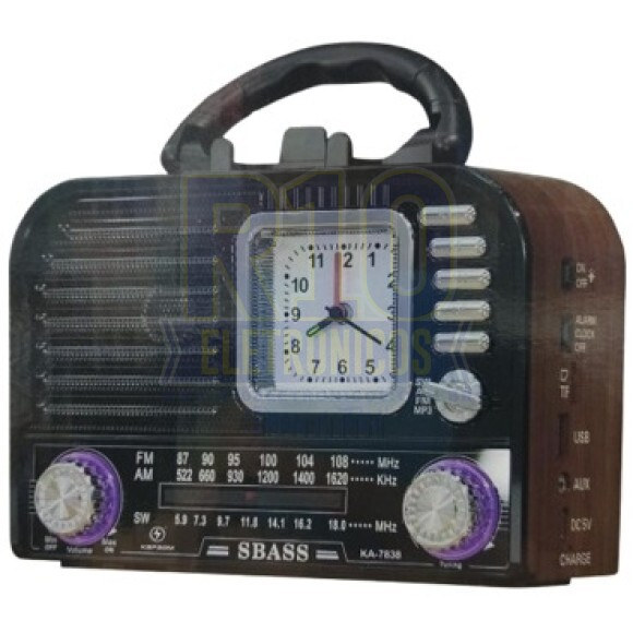 RADIO PORTÁTIL KAPBOM KA-7838 FM/AM/SW/MICRO SD/PENDRIVE COM RELÓGIO