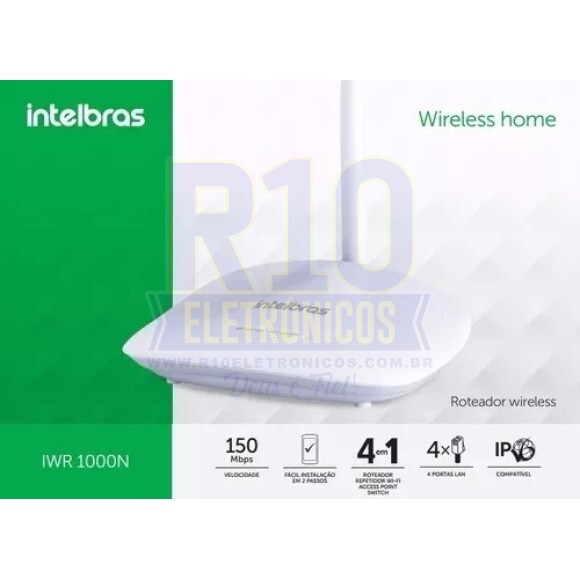 ROTEADOR INTELBRAS IWR 1000N 150 MBPS 4EM1 ROTEADOR/REPETIDOR/ACCESS POINT/SWITCH
