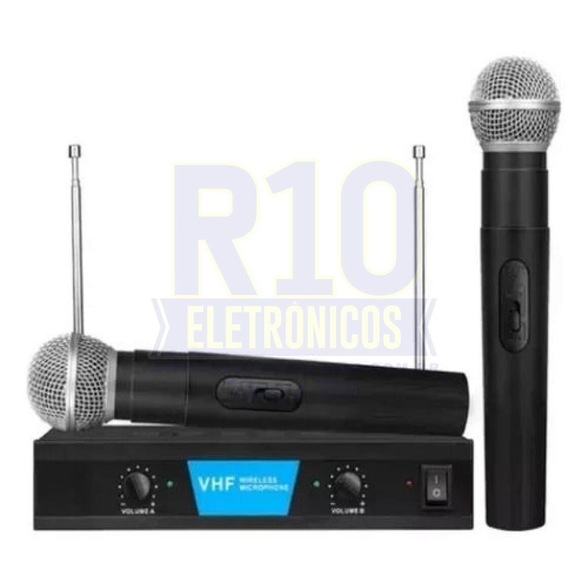 Microfone Sem Fio Dinâmico Profissional VHF Canal Duplo: