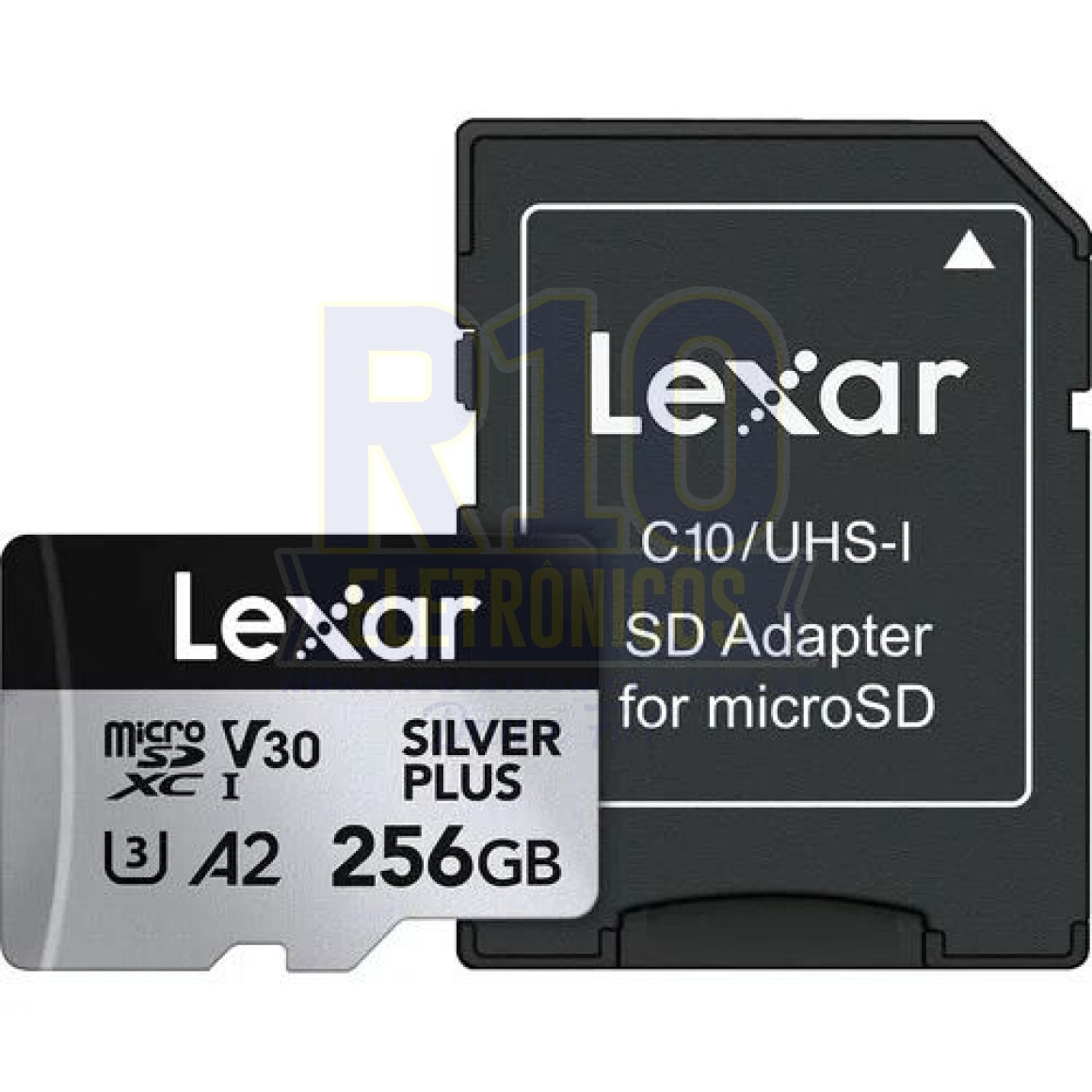 MICRO SD 256GB LEXAR SILVER PLUS 205MB/S A2 U3 V30 4K COM ADAPTADOR