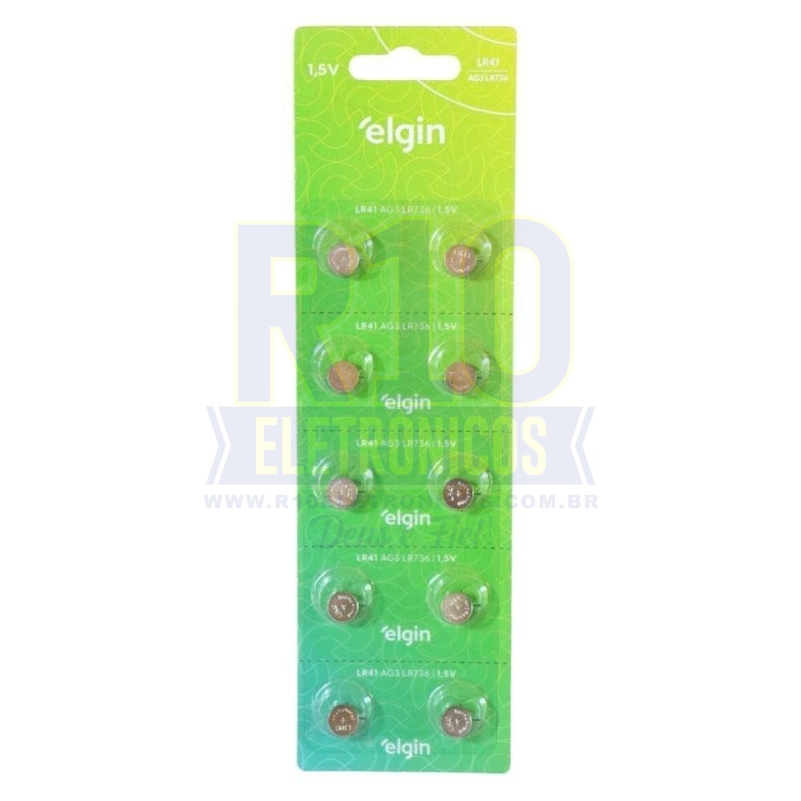 BATERIA LR41 ELGIN AG3 LR736 1,5V CARTELA C/10