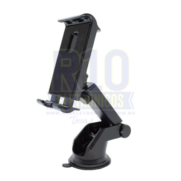 - Abertura ajustável para fixar diversas marcas e modelos de aparelhos com largura até 8,5 cm, com giro de 360º