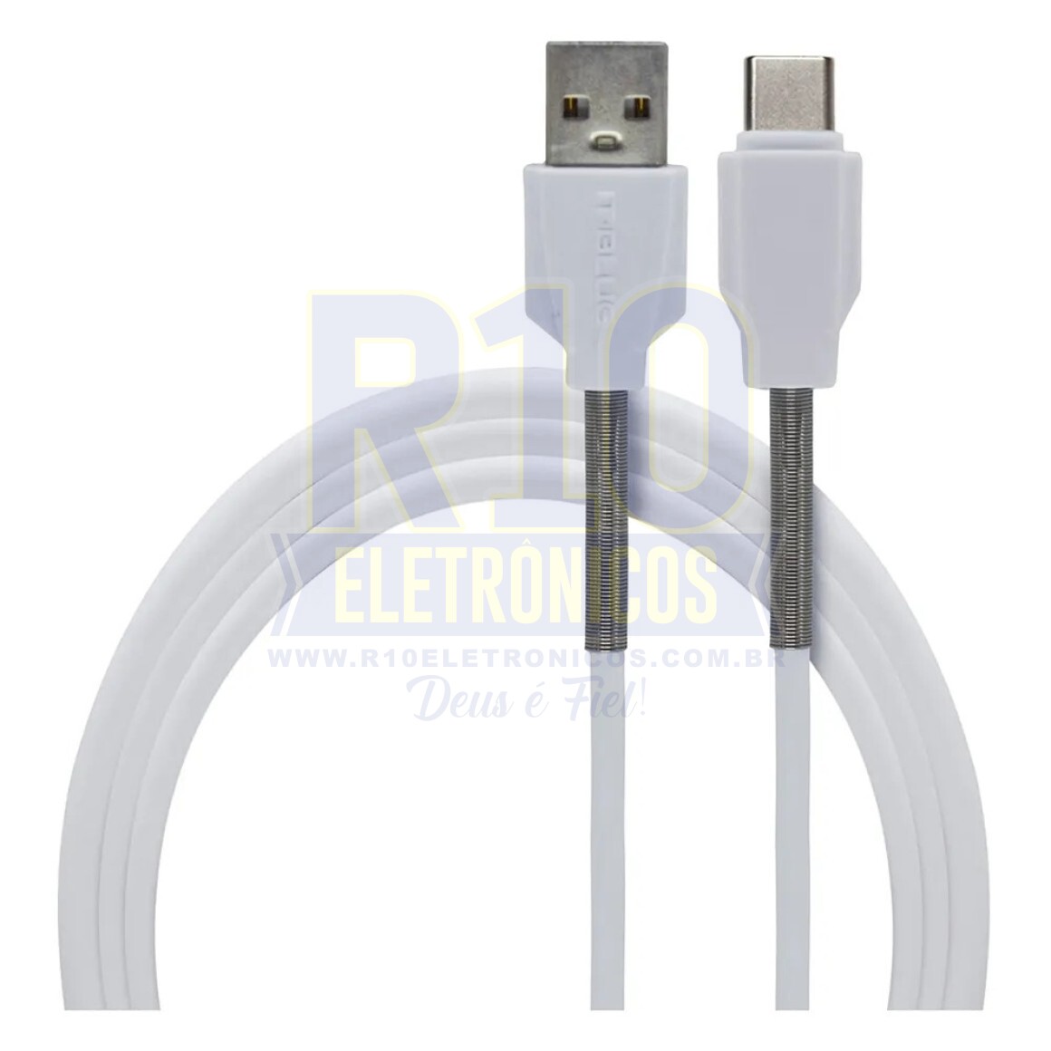 Contém 1 CABO DE DADOS TURBO USB TIPO C COM MOLAS DE FERRO EM AMBAS AS PONTAS.