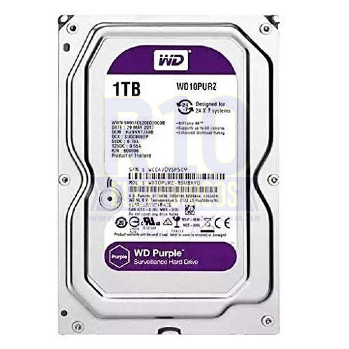 WD Purple Surveillance é um HD 1tb compacto com baixo consumo de energia para vigilância eletrônica/CFTV. Projetado para DVRs e NVRs, e vigilância residencial, escritórios ou pequenas empresas, o WD Purple sustenta gravação simultânea de até 64 câmeras, com tecnologia AllFrameTM, que melhora a reprodução de vídeo.SEGURANÇA.