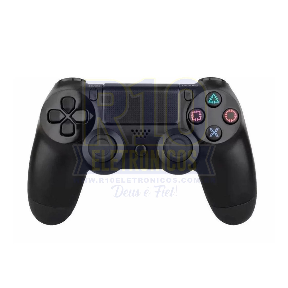 Controle para Ps4 Sem Fio Recarregável Joystick Preto - Maxmidia O controle da marca Maxmídia combina funções essenciais que preservam a sua jogatina. Graças ao seu formato ergonômico especialmente projetado para a posição das suas mãos, você pode passar horas jogando com total conforto. Conta com botões macios, gatilhos rápidos, touchpad funcional e analógicos firmes e precisos, além de contar também com função de vibração para uma melhor experiência na hora do jogo. Controle com tecnologia Wireless, que permite uma conexão segura e sem atrasos, permitindo jogar em distância de até 10 metros do console.