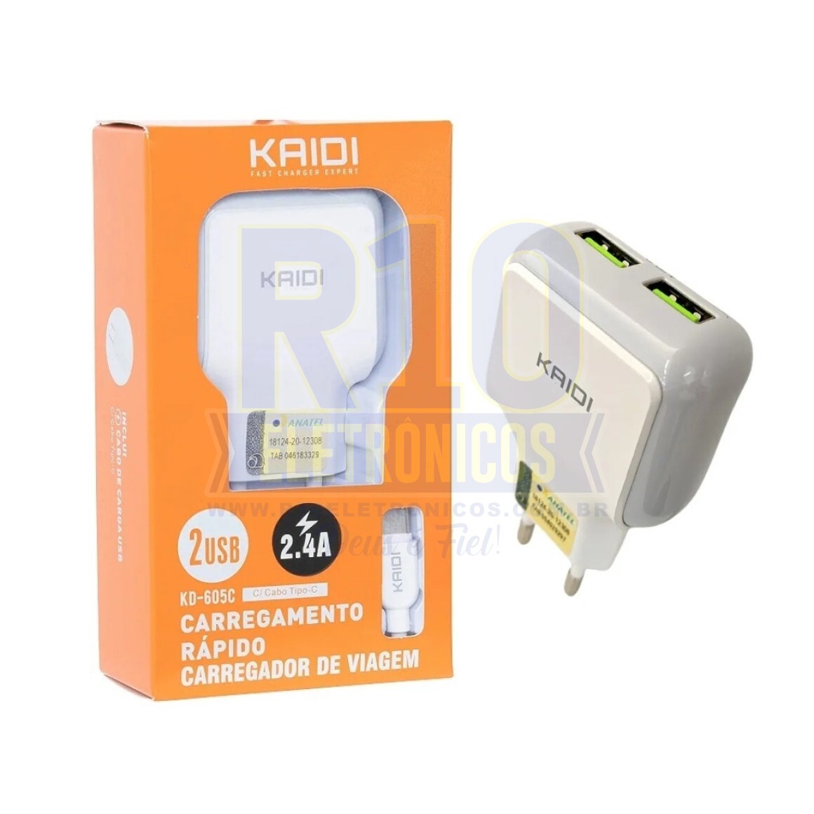 Marca: KaidiModelo: KD-605CEntrada: AC100-240V/50-60Hz2 Saídas USB: DC5V-2.4APotência: 12W(MAX)Cabo: 1m