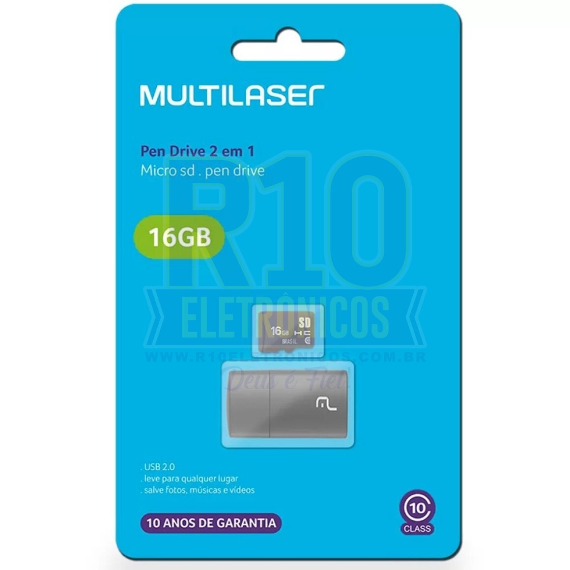 en Drive Multilaser MC161 2 Em 1 Cartão Micro SD Leitor USB 8GB