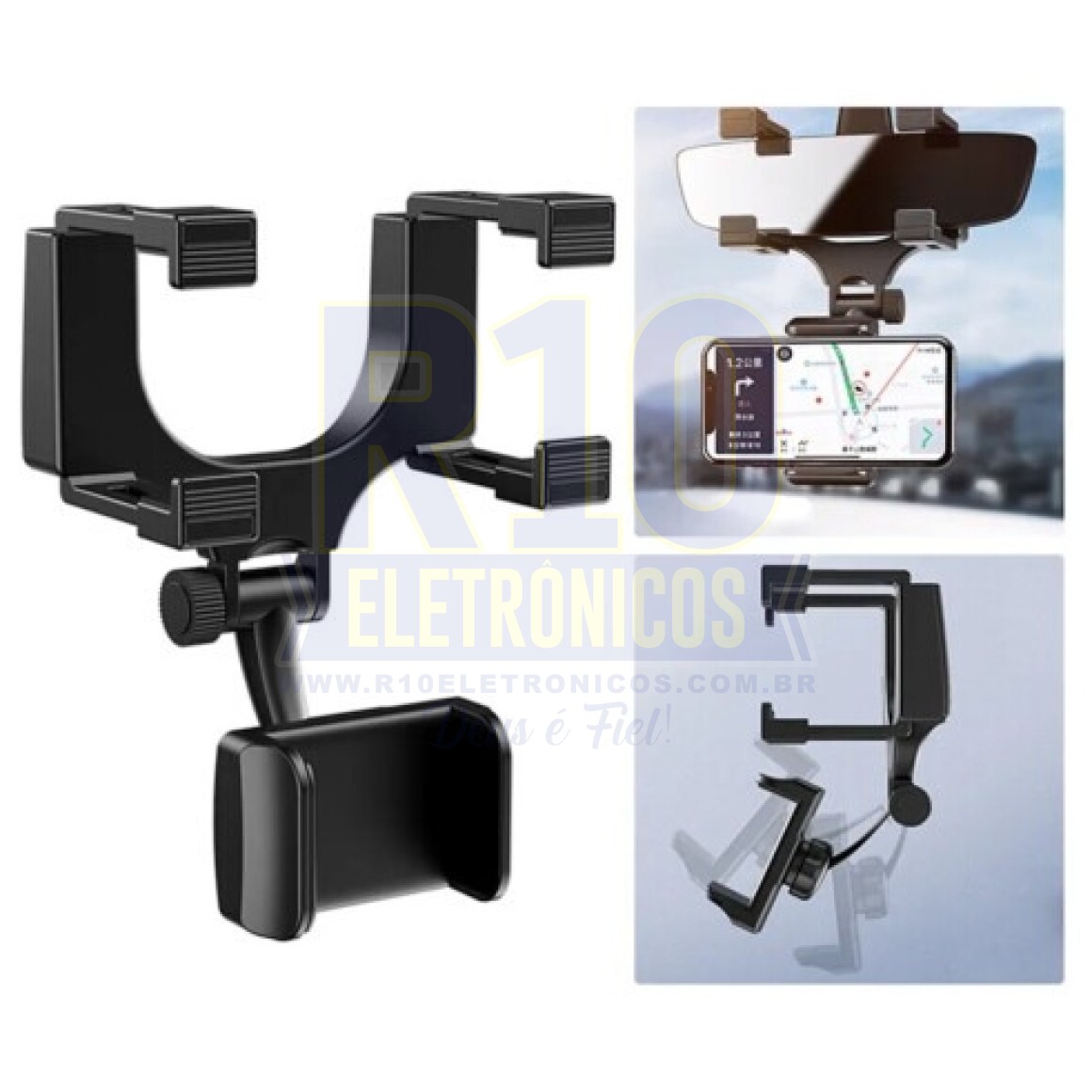 Apresentamos o Suporte para Celular Veicular Retrovisor, o companheiro perfeito para suas viagens de carro. Esse suporte inteligente permite que você posicione seu smartphone de forma estratégica, preso ao retrovisor, garantindo uma visão clara e sem obstruções da estrada.