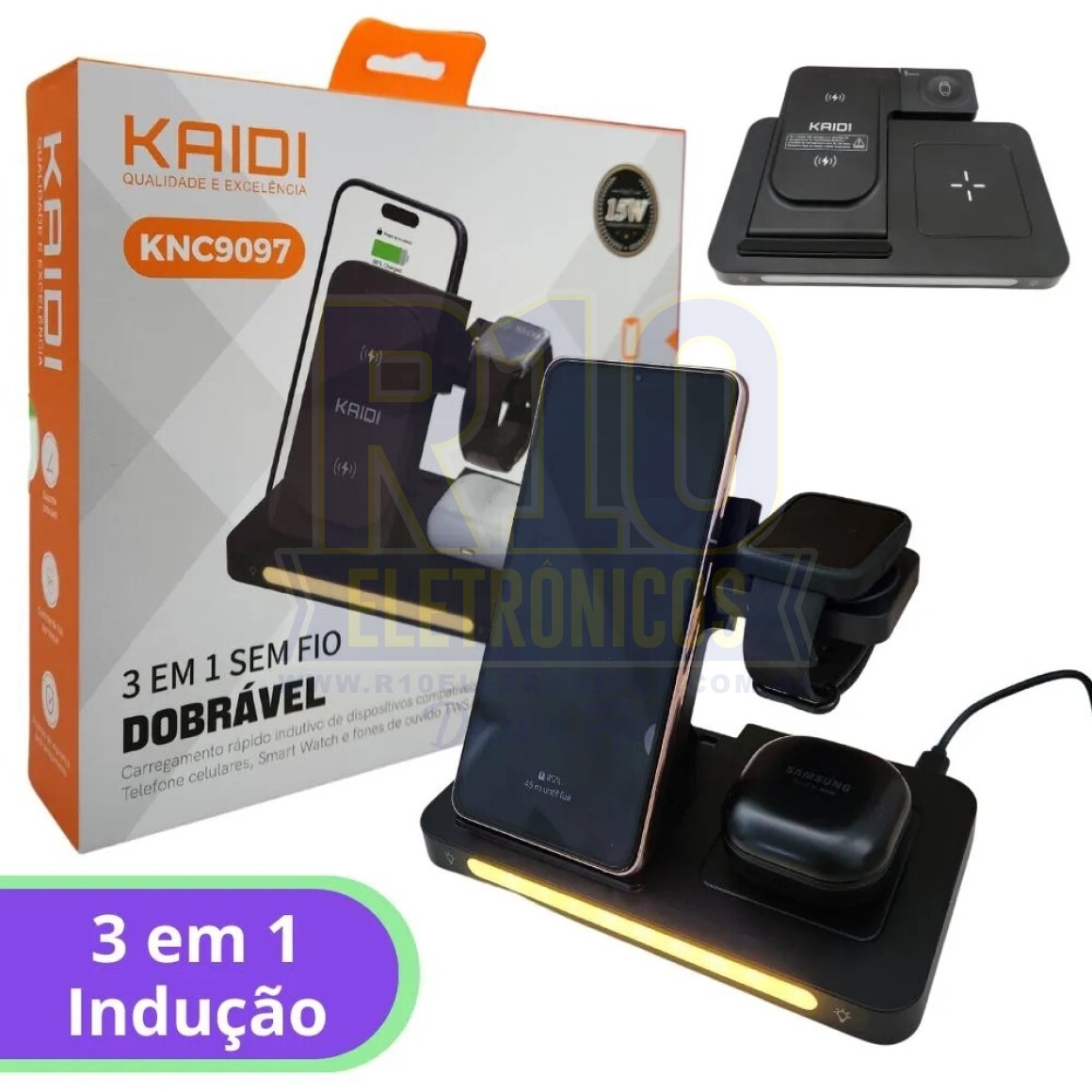 BASE DE CARREGAMENTO POR INDUÇÃO KAIDI KNC9097 3 EM 1