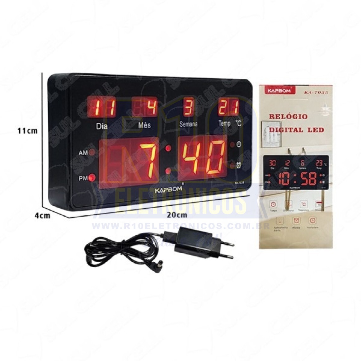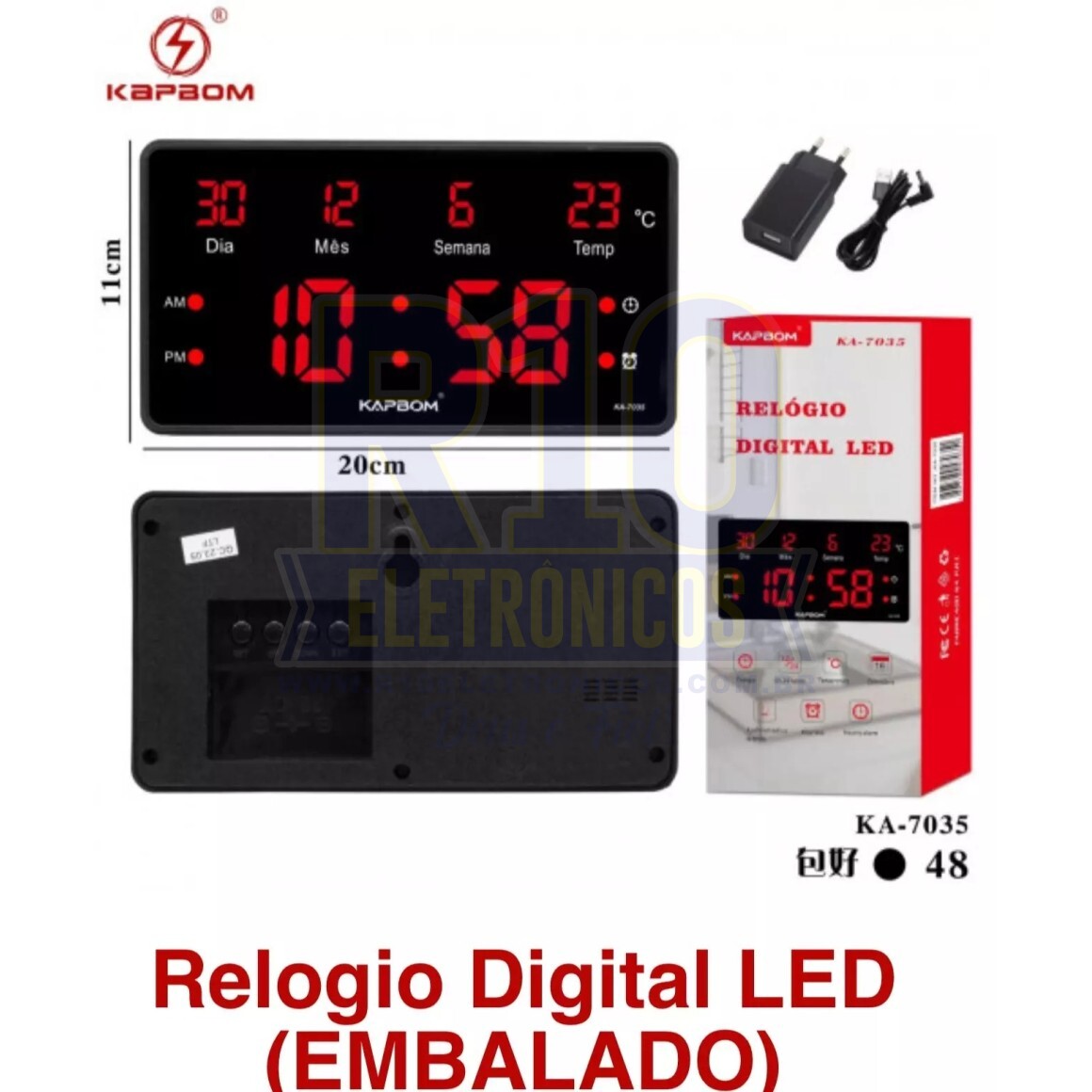 RELÓGIO DIGITAL KAPBOM KA-7035 COM ALARME, TEMPERATURA E DATA