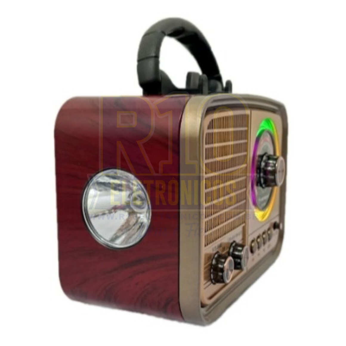 Este é um rádio estilo retro, com Bluetooth, entrada para Pen drive e cartão de memória.