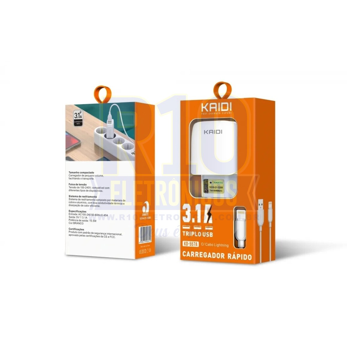 CARREGADOR IPHONE KAIDI KD-557A 3.1A COM 3 USB