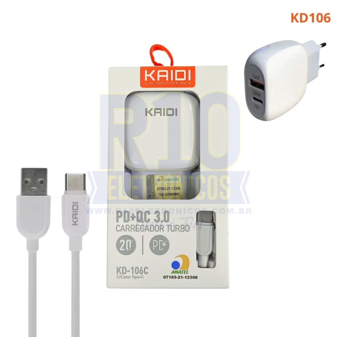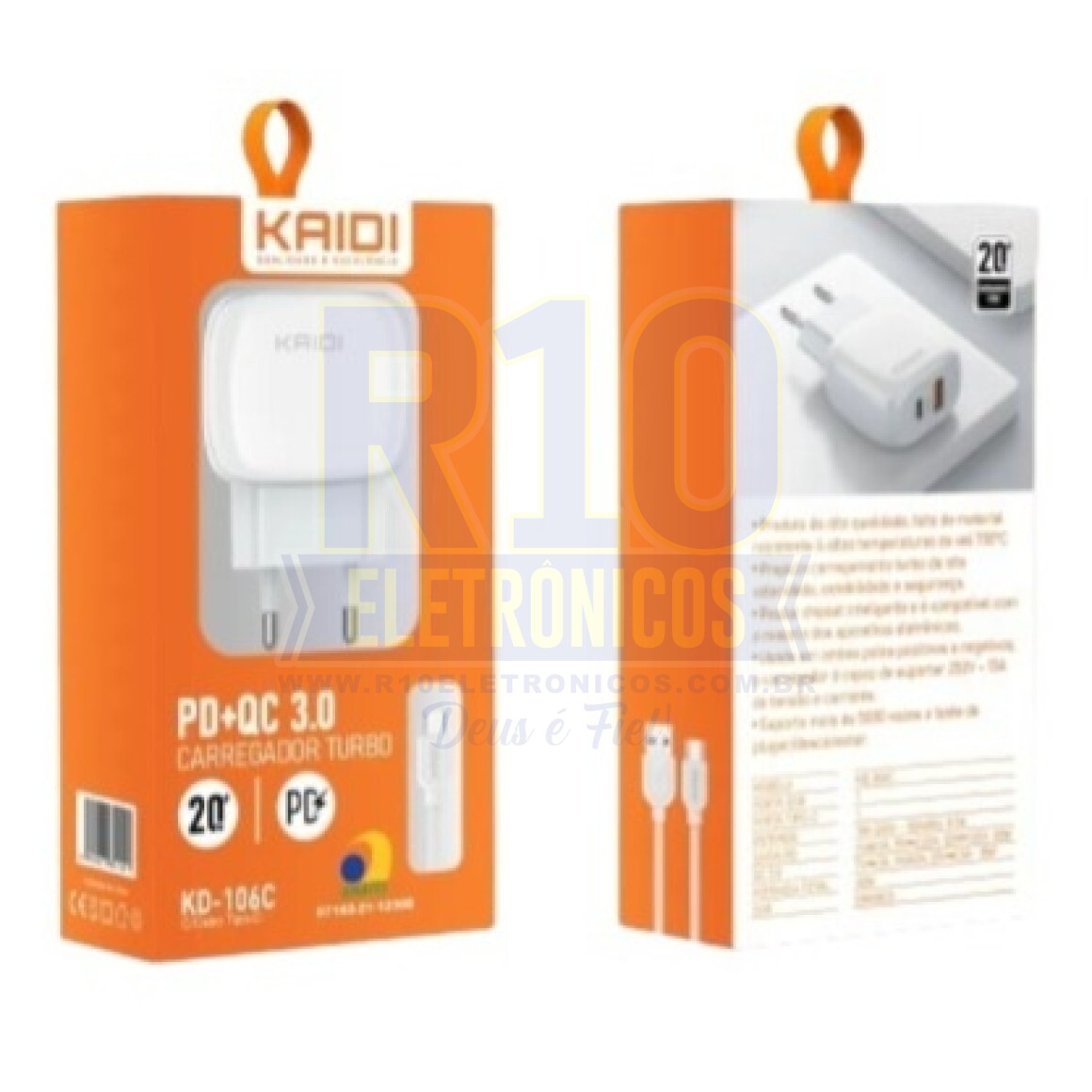 CARREGADOR KAIDI TIPO-C TURBO KD-106C 20W