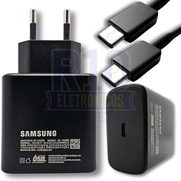 Carregamento super-rápido para uma ampla gama de dispositivos. Compatibilidade universal Seguro e estável também pode ser rápido e potente. A velocidade de carregamento pode variar de acordo com o dispositivo. ** O SFC 2.0 (45W) está disponível no Galaxy S20 Ultra, S22+ S22 Ultra, Note10+, Tab S7+ e versões mais recentes. Dispositivos compatíveis podem ser adicionados. Com o carregador de 45W, seu Galaxy fica com a carga completa super-rápido. Ganhe também um cabo extralongo prático de 1,8m na caixa. De fones de ouvido a tablets, carregue uma ampla gama de dispositivos em velocidades incríveis e aproveite o tempo de carregamento rápido para usar seus dispositivos. Seguro e estável também pode ser rápido e potente. Dê a seus dispositivos Galaxy a fonte de energia estável e segura que eles merecem. Em condições normais de uso, este carregador oferece proteção contra perigos como sobrecorrente, curtos-circuitos, variações de temperatura e muito mais.