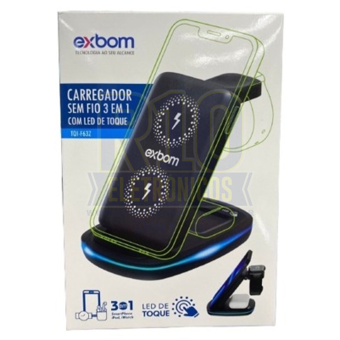 BASE DE CARREGAMENTO POR INDUÇÃO TQI-F63Z EXBOM 3EM1 COM LED