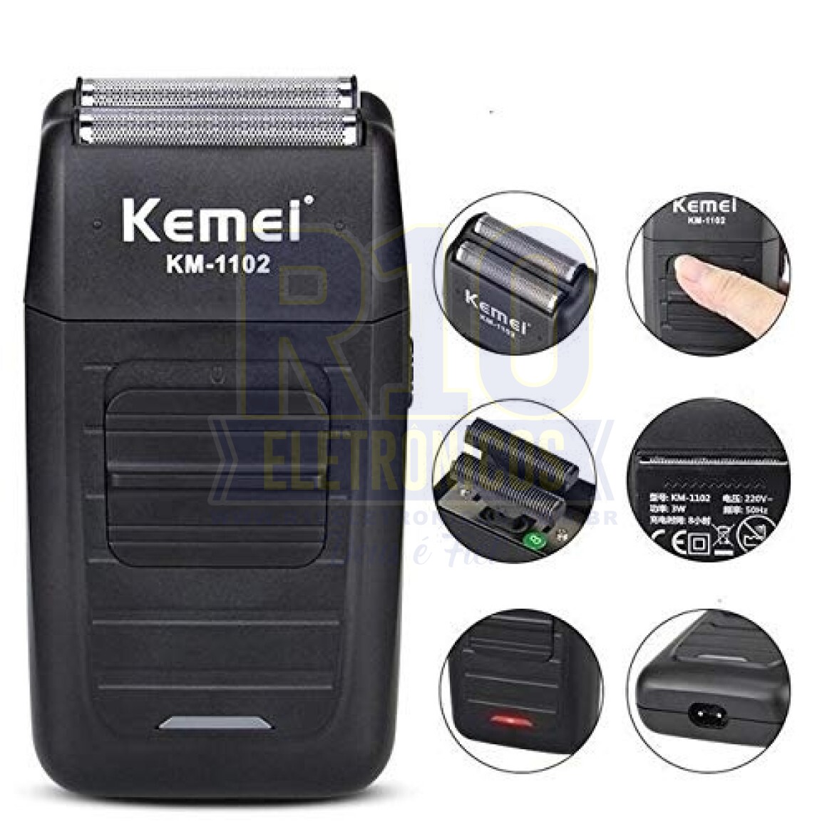 kemei km-1102 é um barbeador elétrico de barbear, podendo substituir a navalha. Onde pode usar: