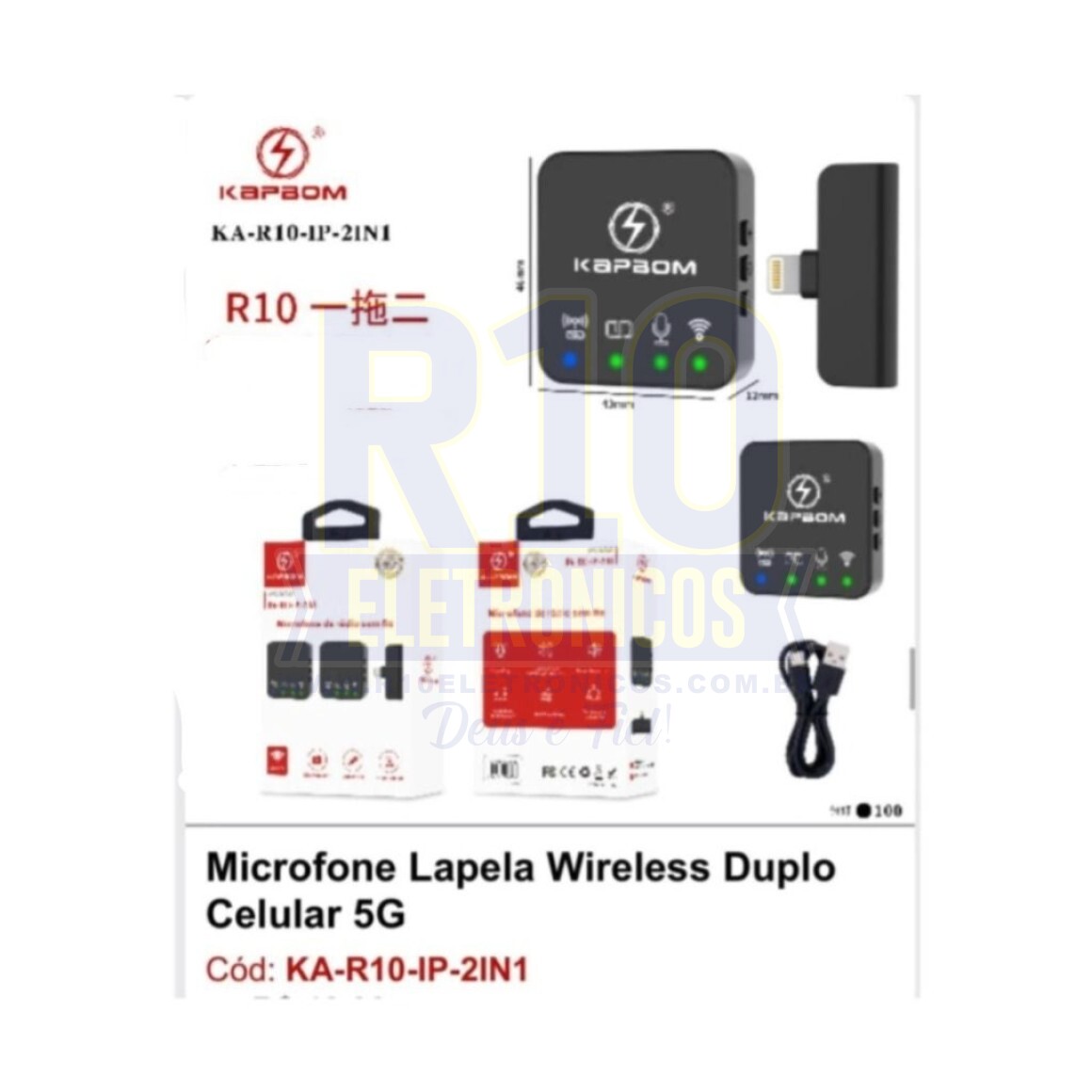 2. MICROFONE LAPELA SEM FIO KAPBOM KA-R10-IP-2IN1 DUPLO LIGHTNING