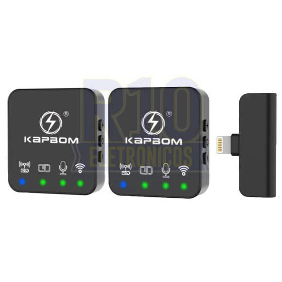 MICROFONE LAPELA SEM FIO KAPBOM KA-R10-IP-2IN1 DUPLO LIGHTNING