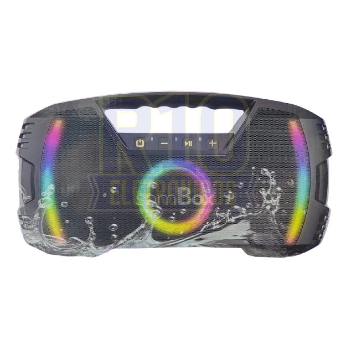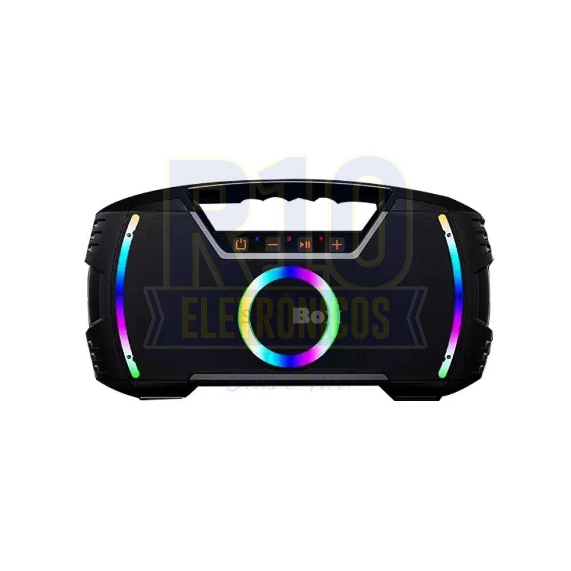 Tipo de alto-falante: cilindrico. Possui conectividade Wi-Fi e Bluetooth. Possui luzes LED. Potência de 60W. Vem com um microfone de acessório. Vem com um suporte. Lugar de colocação: base. Tempo de carga da bateria: 4h.