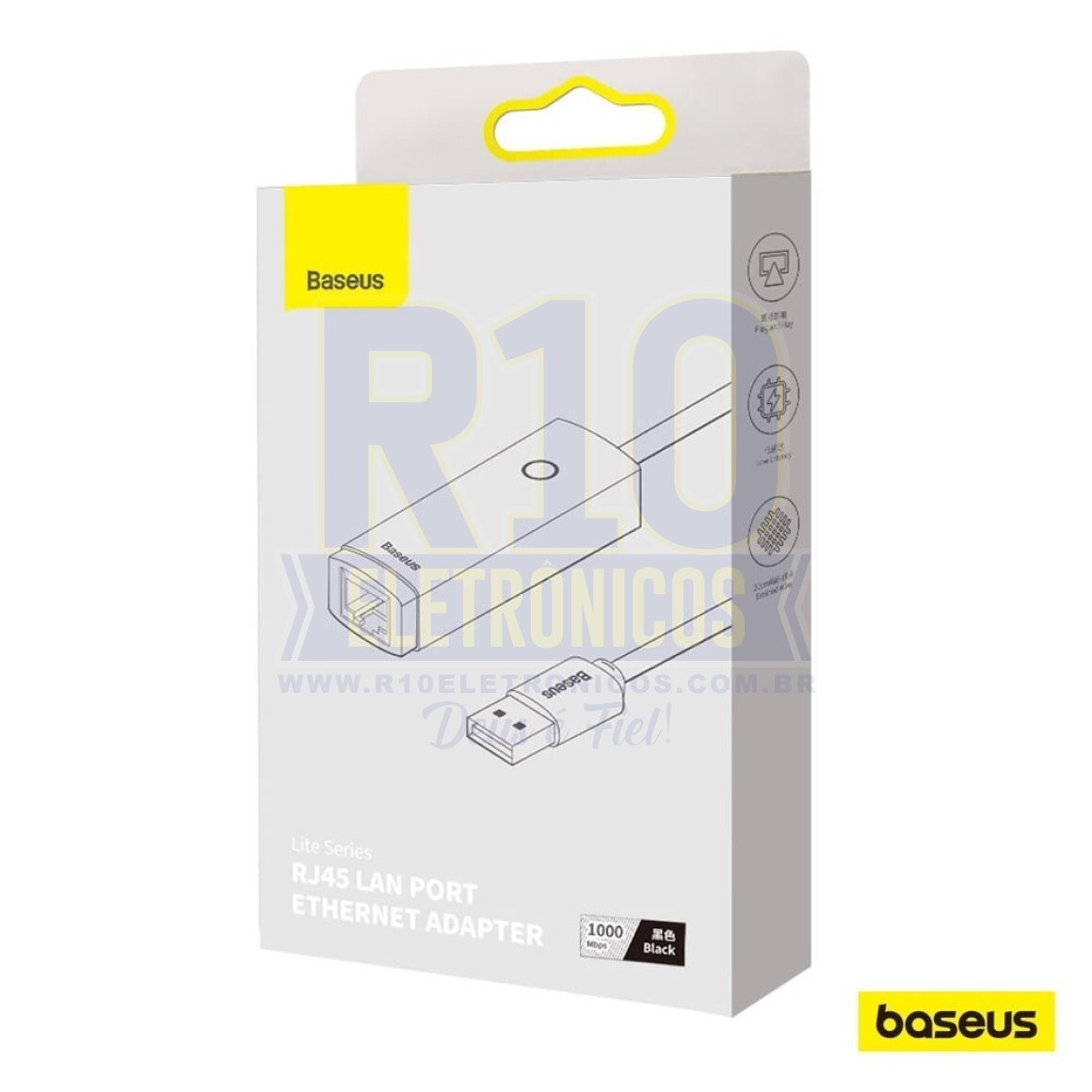Adaptador Ethernet Baseus Hub Lite Series USB-A para RJ45 Porta LAN 100Mbps Preto WKQX000001
