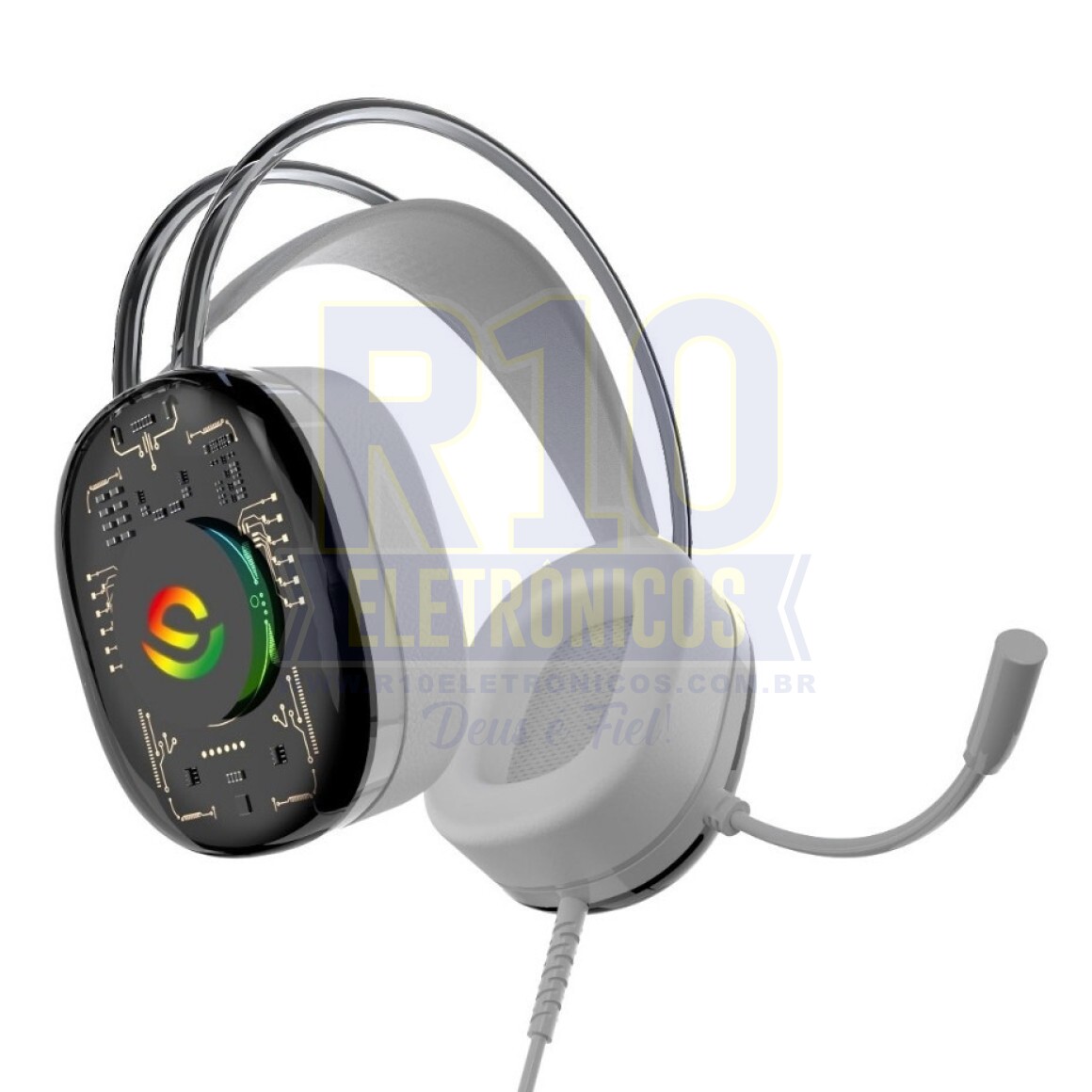 A iluminação RGB dinâmica adiciona um toque visual impressionante ao headset, trazendo estilo e personalidade à sua experiência de jogo, além de combinar perfeitamente com o resto do seu setup gamer.