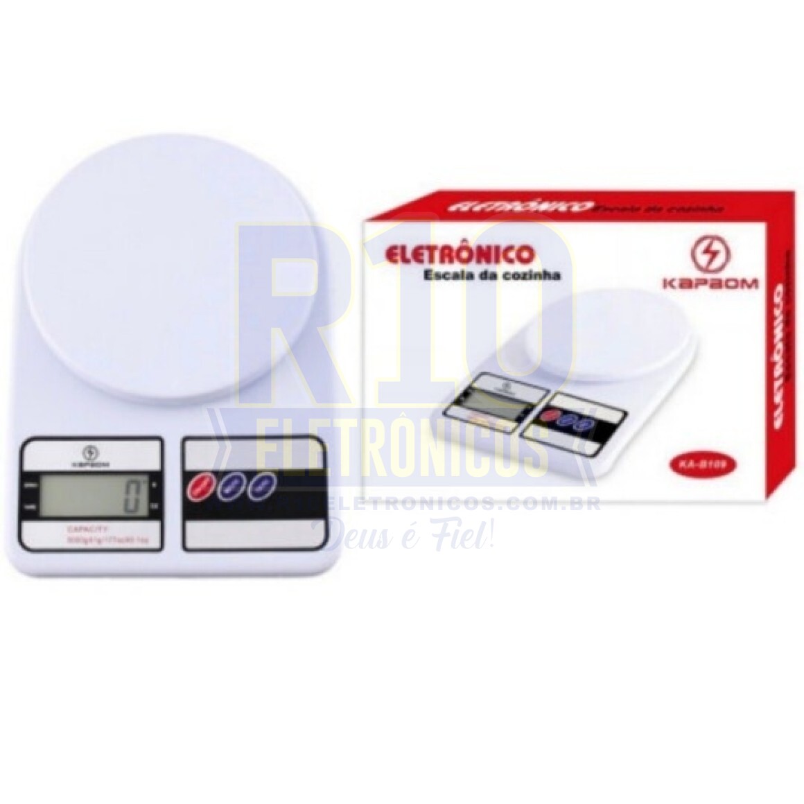 Especificação: 5kg x 1g/1kg x 0.1g balança de pesagem eletrônica digital da cozinha Esta é uma balança de cozinha digital. Capacidade de peso máxima: 1kg/5kg. Chave da unidade: troca da unidade (g, oz, lb) Display LCD. Operação simples Desligamento automático Power by: 2 baterias AAA (não incluídas)