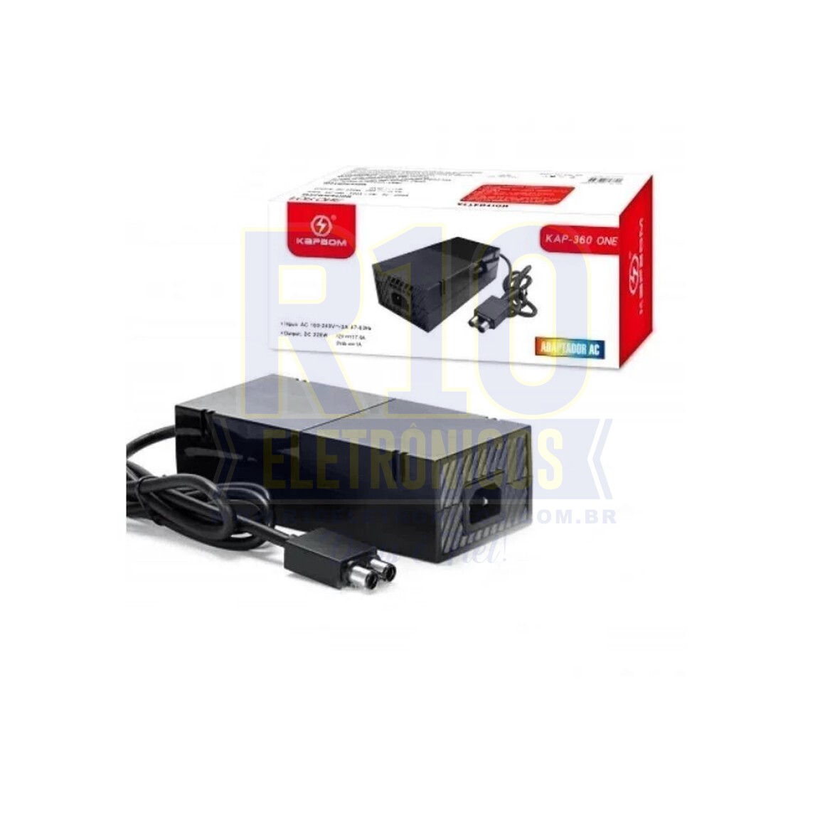 A fonte Kapbom para Xbox One (modelo KAP-360 One) é uma opção eficiente e compatível com diversos modelos do console. Com código de barras 7895680613601, suas especificações incluem entrada CA de 100-240V (3A, 47-63Hz) e saída DC de 200W, sendo 12V a 17,9A e 5Vsb a 1A. Ela é projetada para fornecer energia estável e segura, garantindo o funcionamento adequado do console.