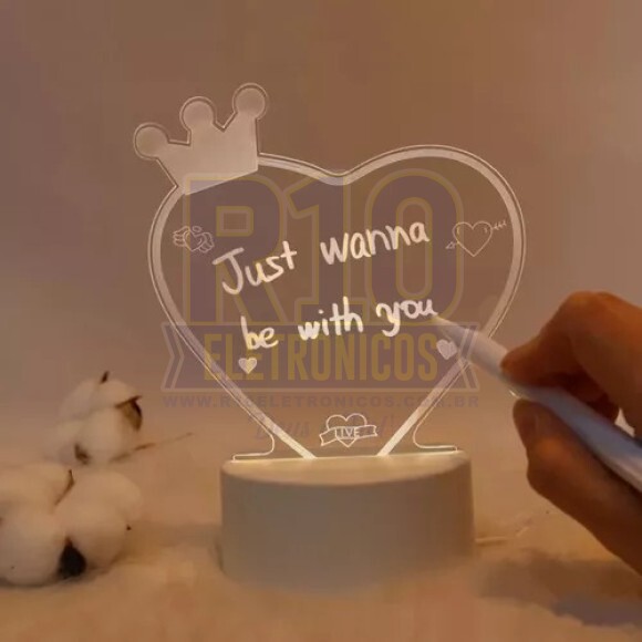 LUMINÁRIA ACRILICO LED LUATEK KL-1516 CORAÇÃO COM CANETA