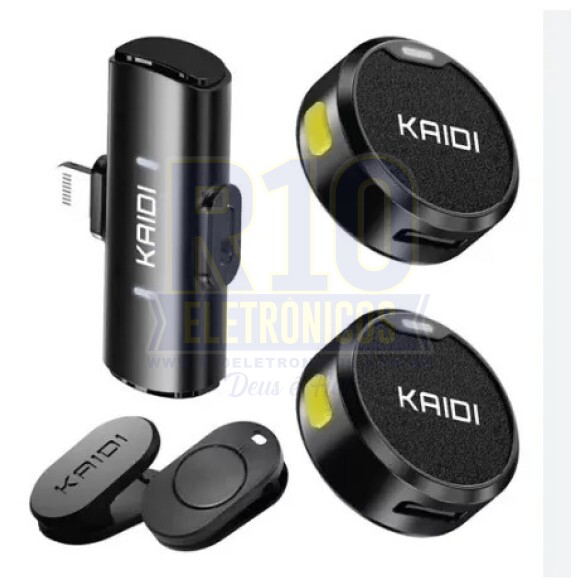 2. MICROFONE LAPELA SEM FIO KAIDI KMF4-A LIGHTNING DUPLO (BOLINHA)