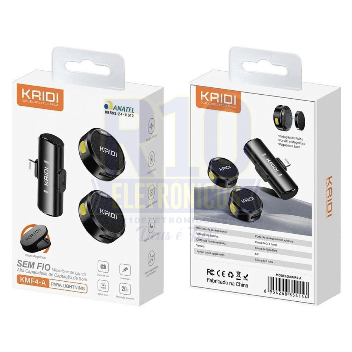 MICROFONE LAPELA SEM FIO KAIDI KMF4-A LIGHTNING DUPLO (BOLINHA)