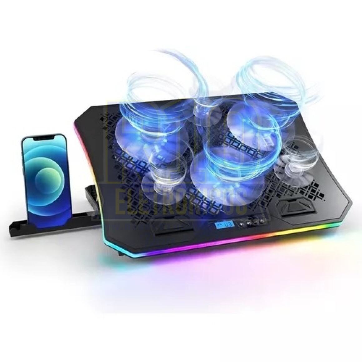 Suporte Para Notebook Laptop Gamer Até 19' Com Ajuste de Altura Led Rgb 6 Fan Cooler Silenciosa Visor Lcd - SP235