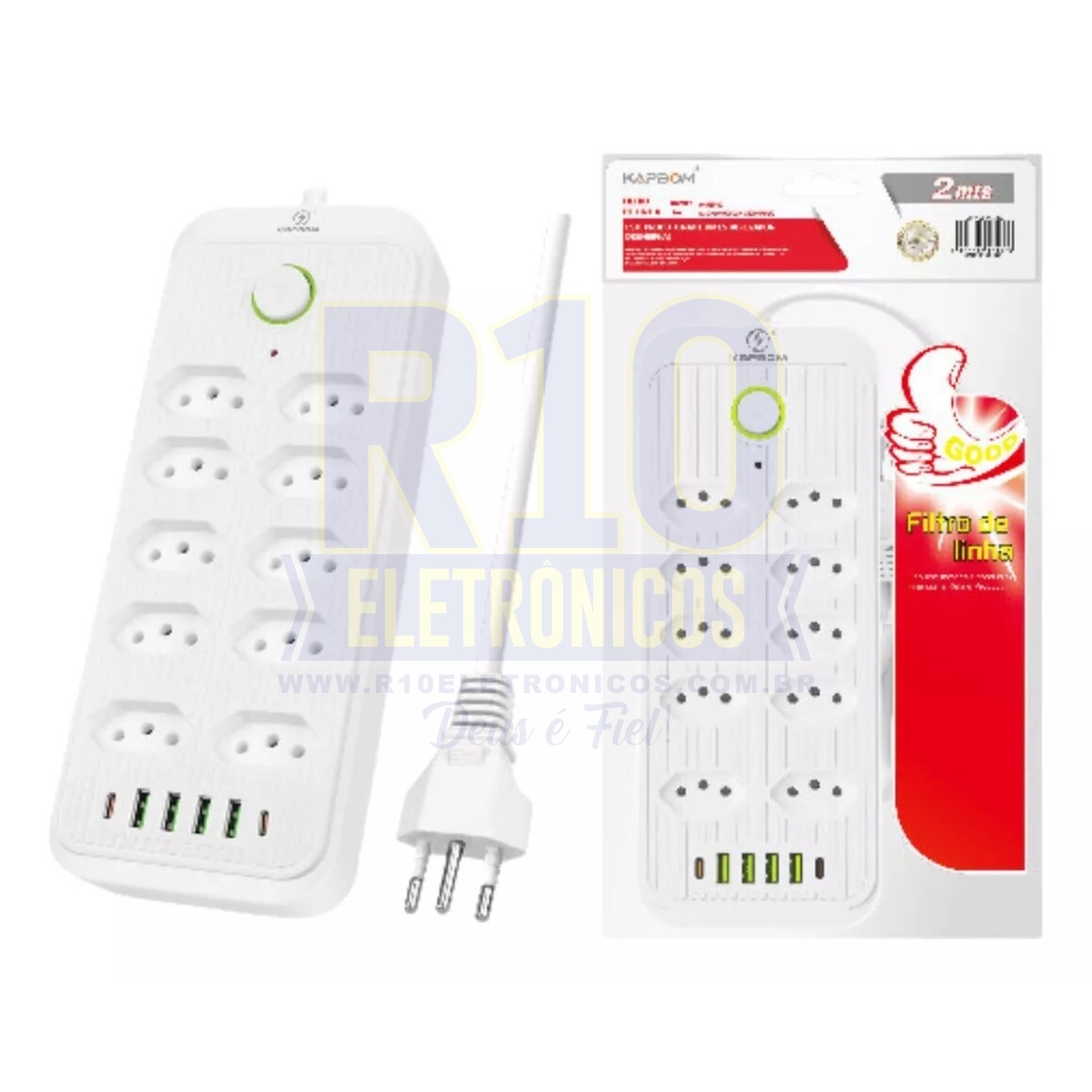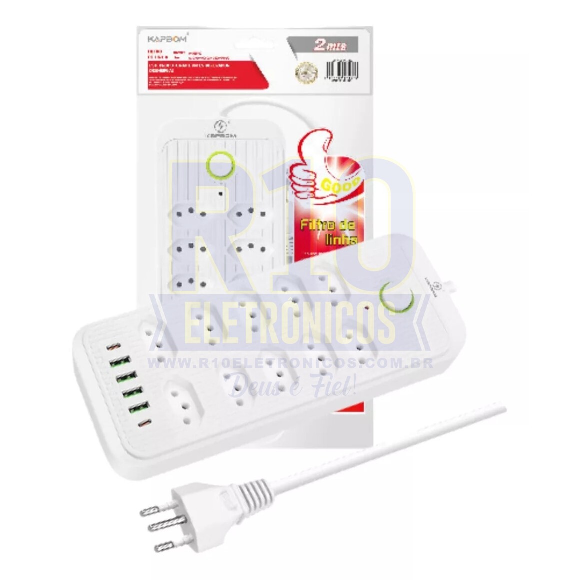 FILTRO DE LINHA KAPBOM KA-7237 10 TOMADAS 2METROS 4USB-A 2USB-C