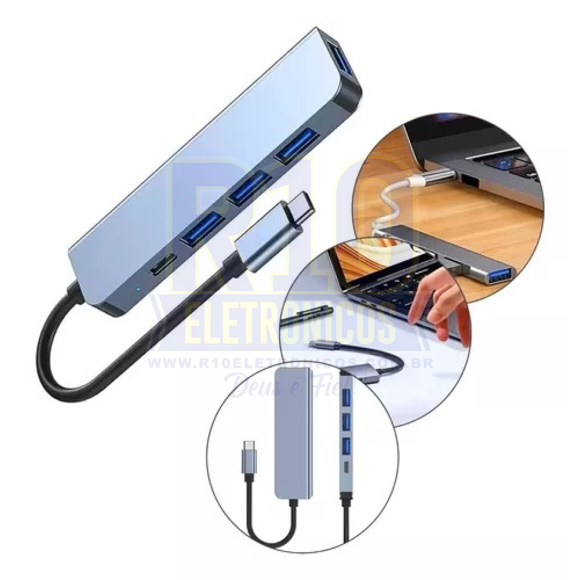 O Hub USB-C 5 em 1 é a solução perfeita para expandir a conectividade do seu dispositivo. Com uma entrada USB-C e cinco portas de saída, ele permite conectar até quatro dispositivos USB (compatíveis com USB 2.0 e 3.0) e um USB-C adicional, garantindo praticidade e eficiência no seu dia a dia. Ideal para notebooks, tablets e smartphones compatíveis com USB-C, este hub oferece transferência de dados rápida e estável, além de um design compacto e moderno, perfeito para quem precisa de mobilidade.