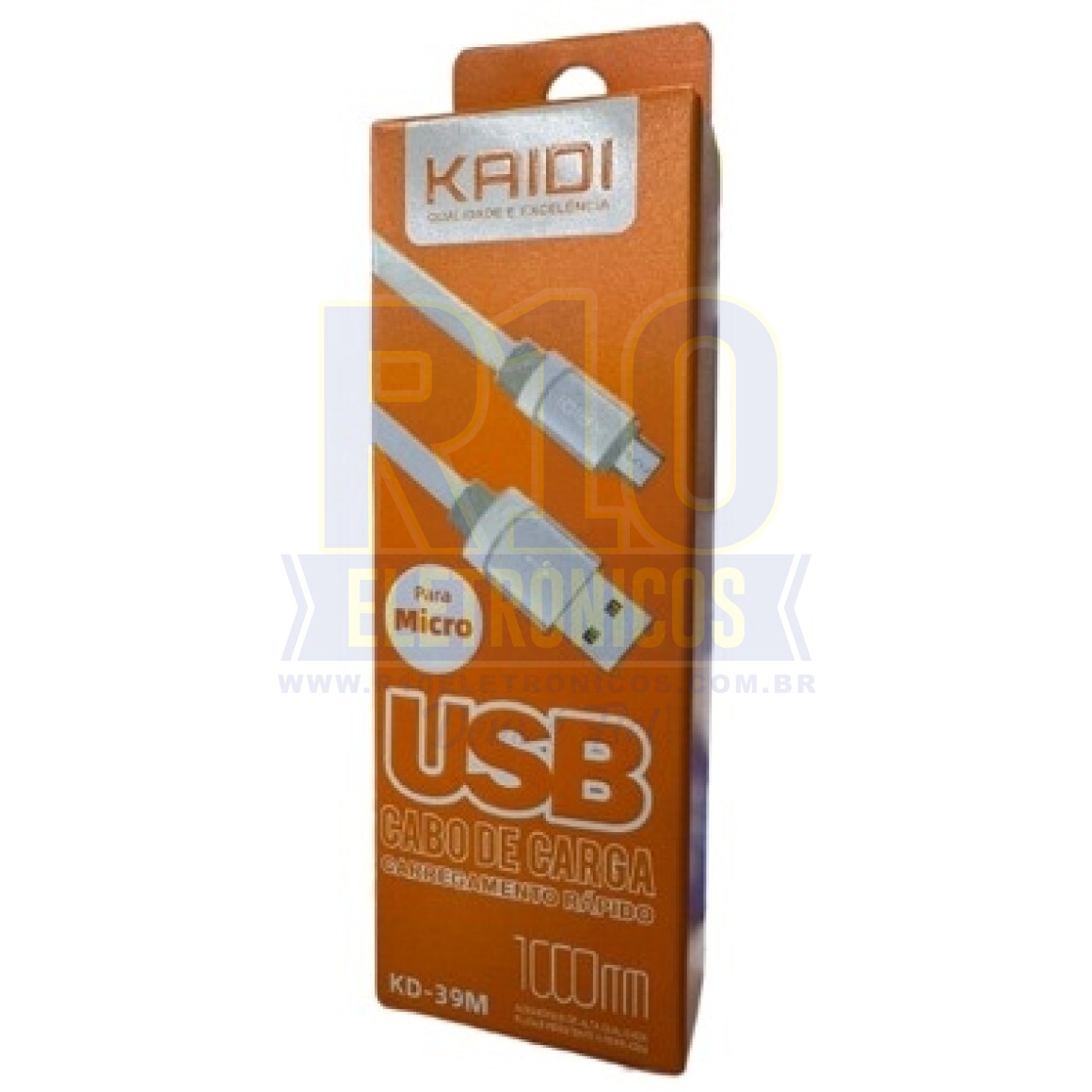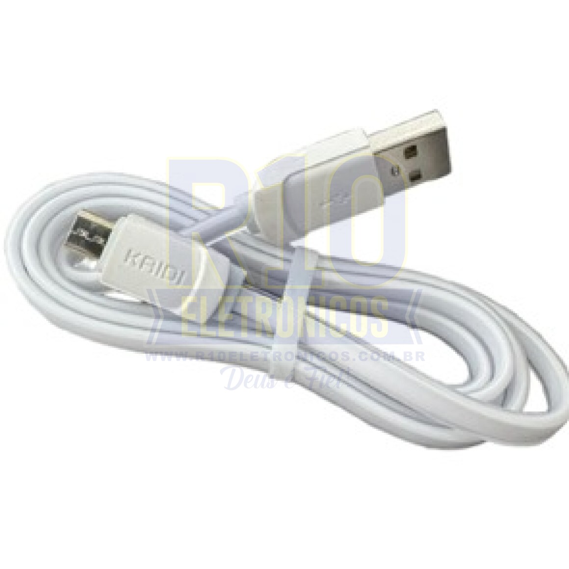 Cabos de Dados e Carregamento KAIDI Micro USB V8 1M KD-39M Cabos de Dados e Carregamento KAIDI Micro USB V8 1M KD-39M Cabo de carregamento e transferência dados Kaidi KD-39M. Este cabo possui um conector USB de alta qualidade reforçado para aumentar o seu tempo de uso útil. Além disso possui um belo design diferenciando dos demais cabos. Seu cabo é estilo flat, podendo ser dobrado em qualquer ângulo sem danificar a parte interna, além do que não enrola, tornando seu manuseio mais fácil, e difícil de dar nó. Modelo: KD-39M Design especial, evita enrolamentoFabricação com material de alta qualidadeProteção ambiental não tóxicaCarregamento rápidoTamanho: 100cmCOR: branco