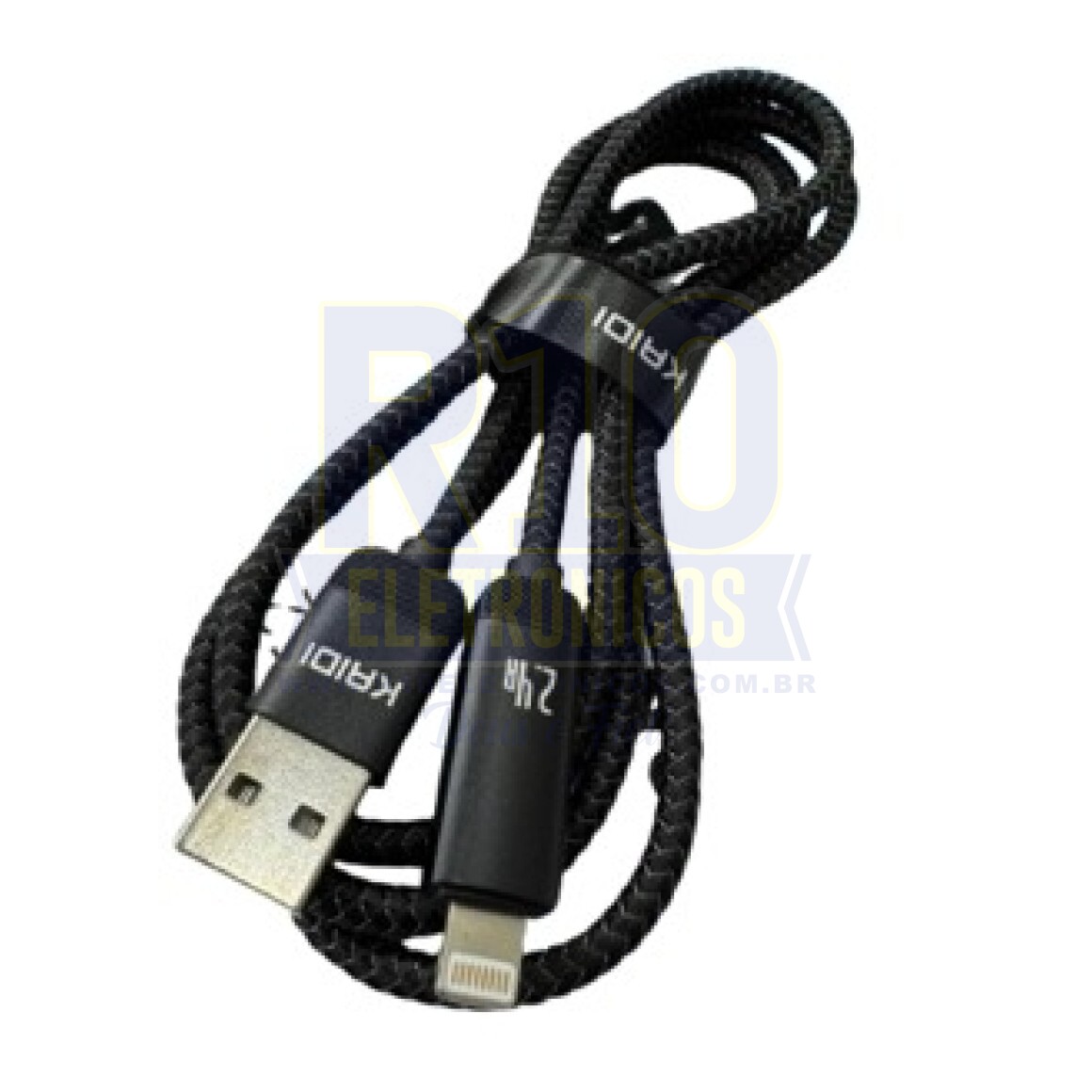 CABO USB IPHONE KAIDI KD-104A 12W COM VISOR 1M CARREGAMENTO RÁPIDA