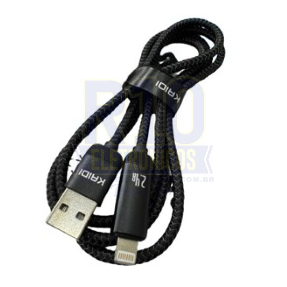 2. CABO USB IPHONE KAIDI KD-104A 12W COM VISOR 1M CARREGAMENTO RÁPIDA