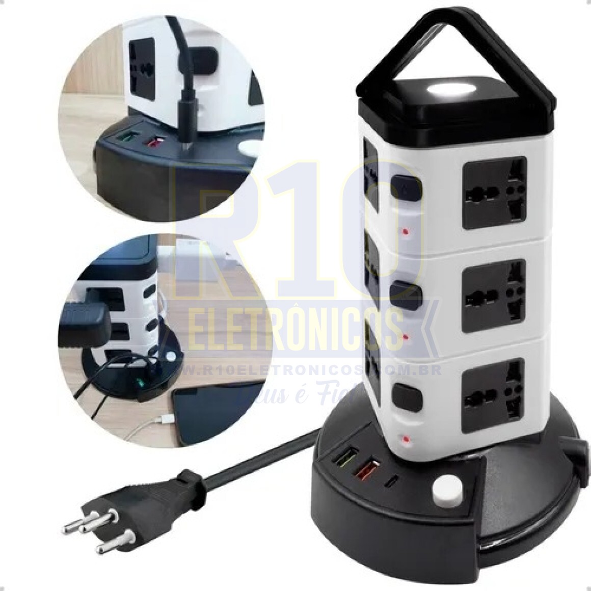 2. TORRE DE TOMADA BMAX BM-8700 FILTRO DE LINHA C/12 TOMADAS 3 METROS
