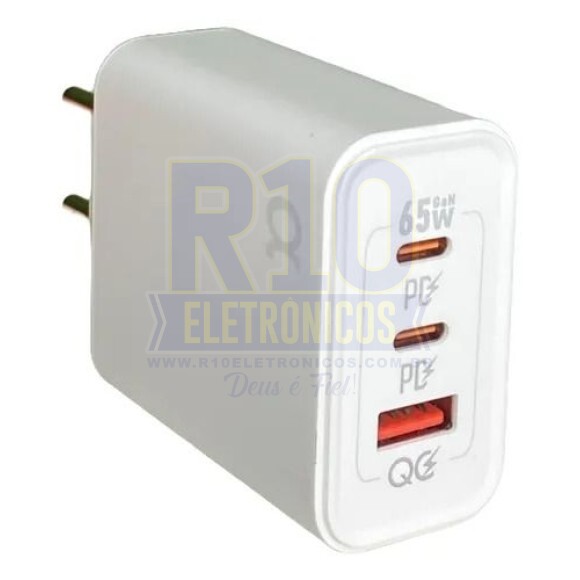 Saída PD Tipo-c: 5V= 3A, 9V=2A, 12V=3A, 20V= 3.25A 65W (Max)
