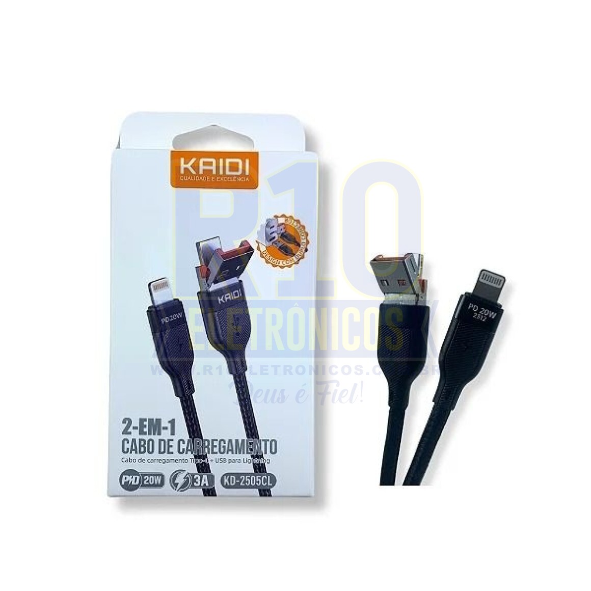 2. CABO USB KAIDI IPHONE 2EM1 KD-2505CL CONECTOR DUPLO 20W 6A