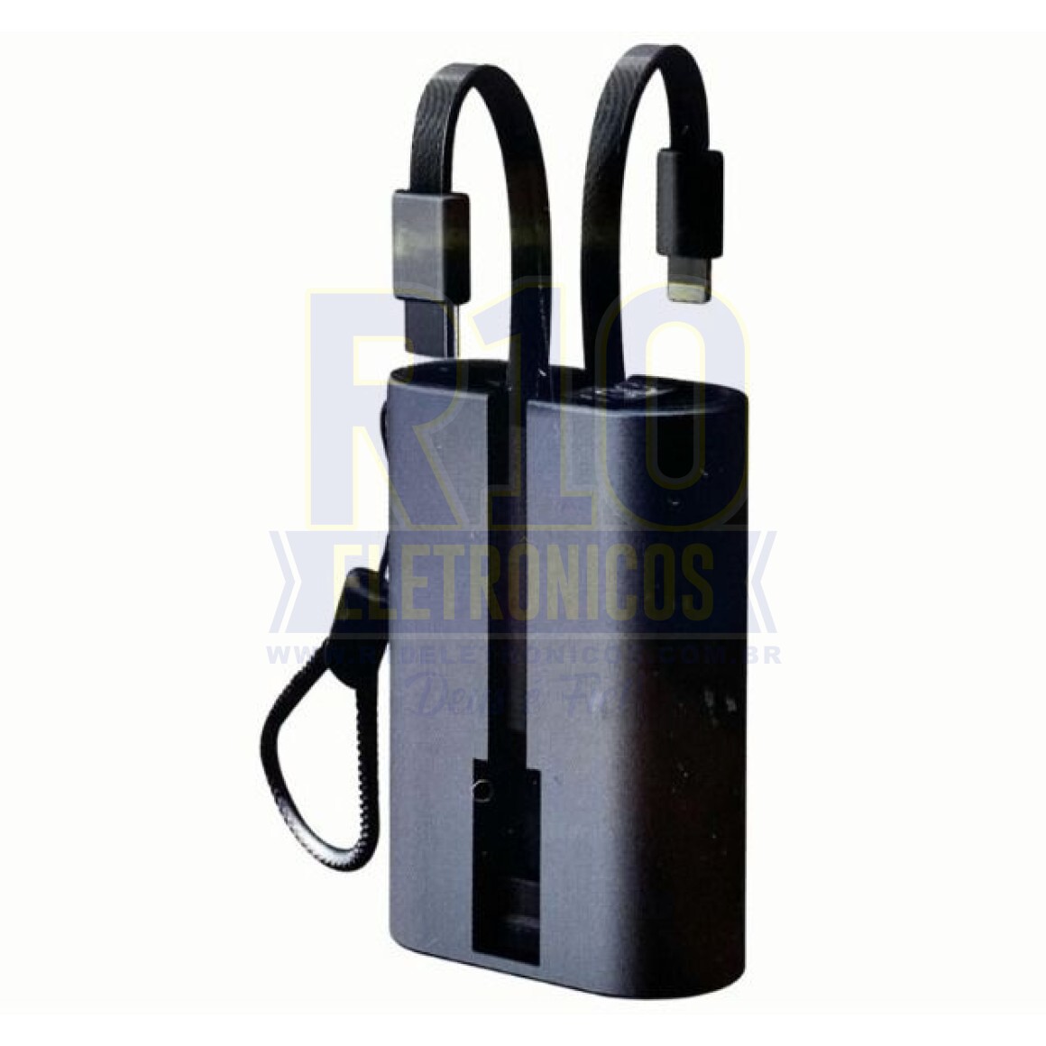 Além da porta USB, conta com dois cabos acoplado de 5cm sendo um do tipo Lightning para Iphone e outro Type-C