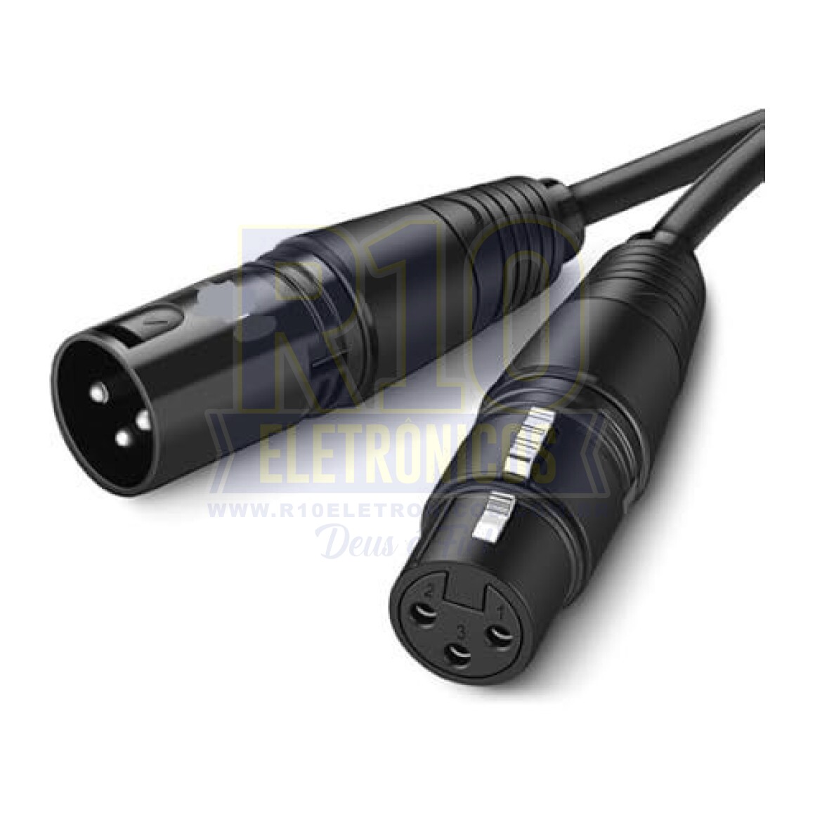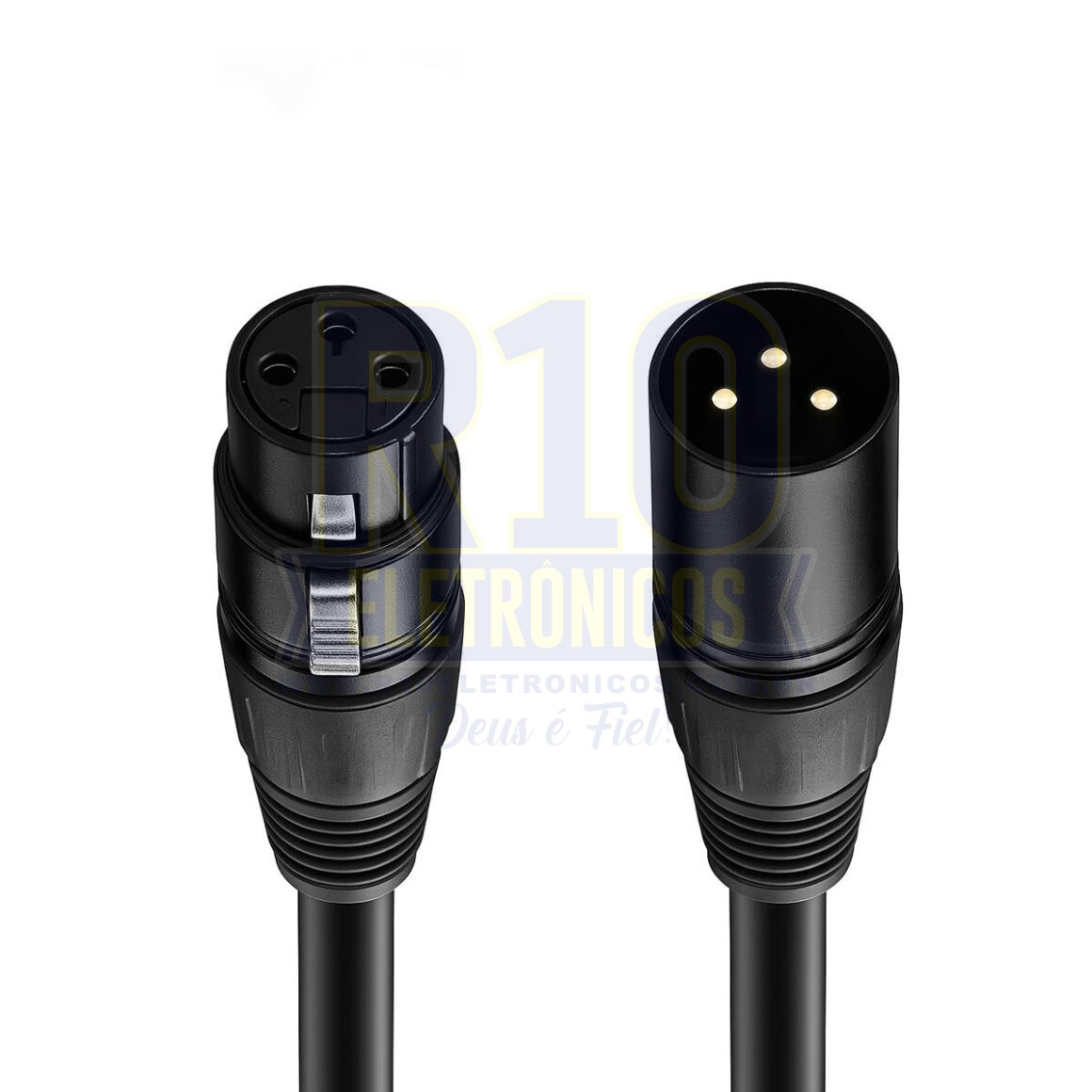 CONECTORES PROFISSIONAIS: XLR 3 pinos macho/fêmea com travamento seguro e corpo metálico resistente, compatível com microfones condensadores (phantom power 48V) e dinâmicos